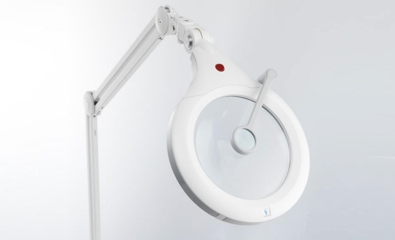 Qualitätsglaslinse mit 12 Dioptrien (4,0X) an einem Schwenkarm. Verwendbar mit den Daylight-Lupenleuchten Quadra (E25120) und Omega 7 (E25130). Der Arm wird einfach auf den Rand der Lupe aufgeschoben. Kein Werkzeug erforderlich.